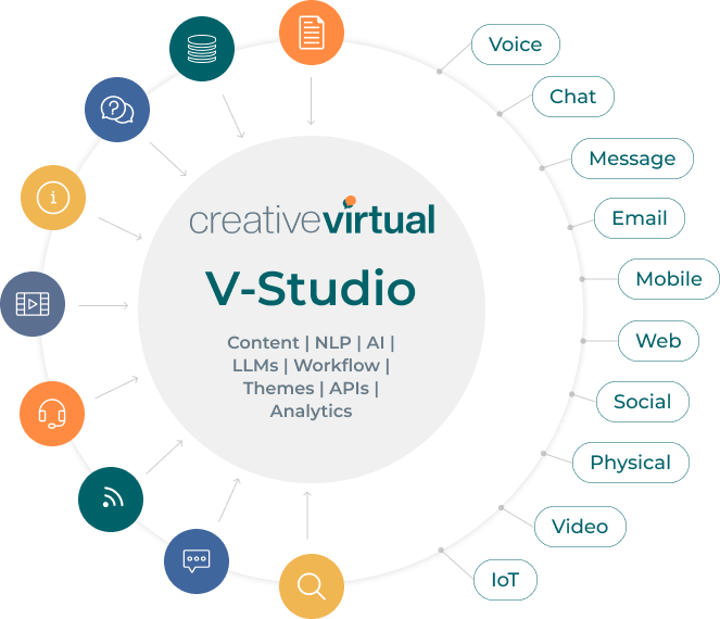 It is on our V-Studio platform that the IQ and EQ of our V-Person chatbots, voicebots, virtual assistants and live chat are created and continually evolve.